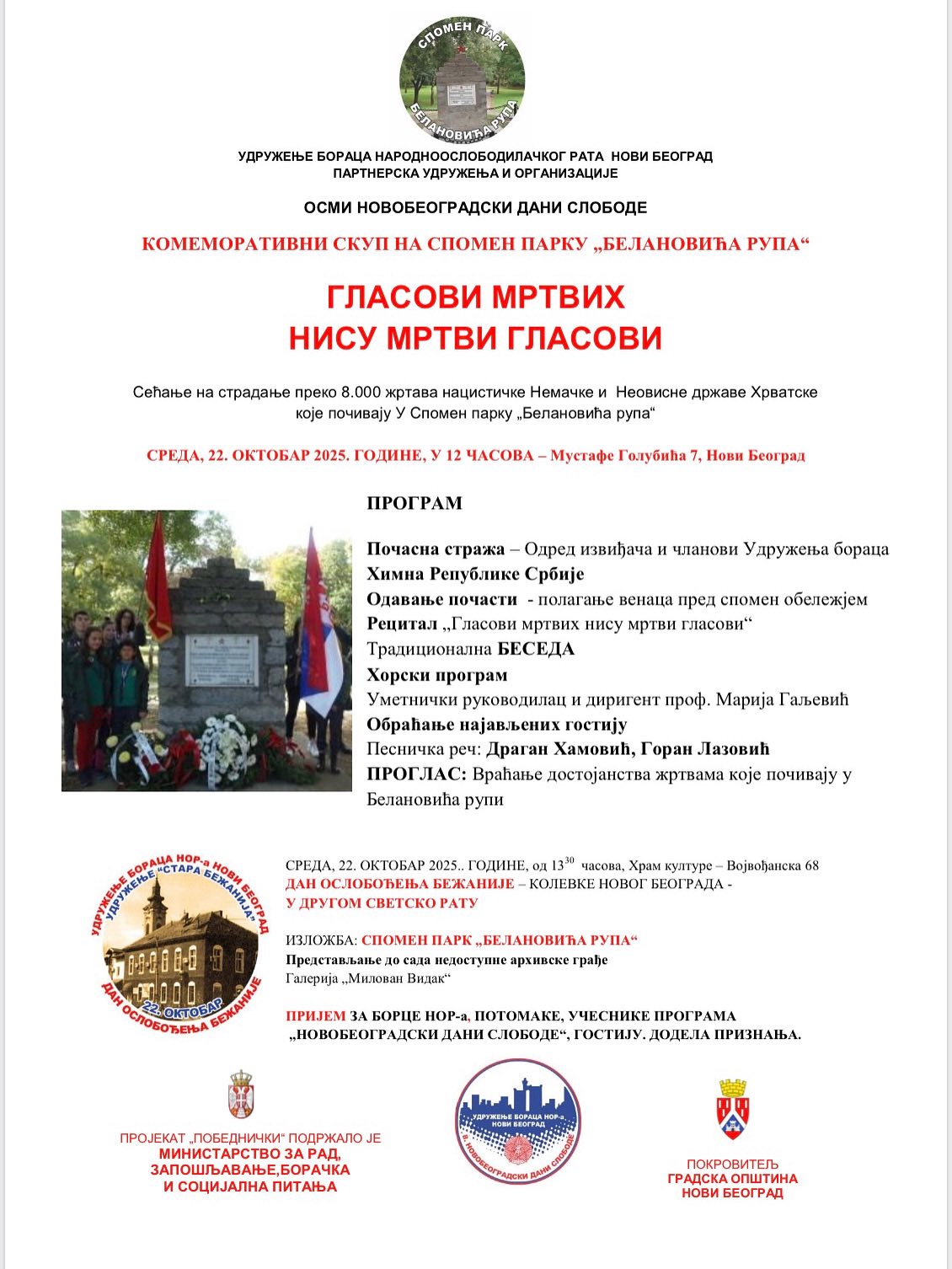 ОРГАНИЗАТОР ПРОГРАМА: УДРУЖЕЊЕ БОРАЦА НАРОДНООСЛОБОДИЛАЧКОГ РАТА НОВИ БЕОГРАД